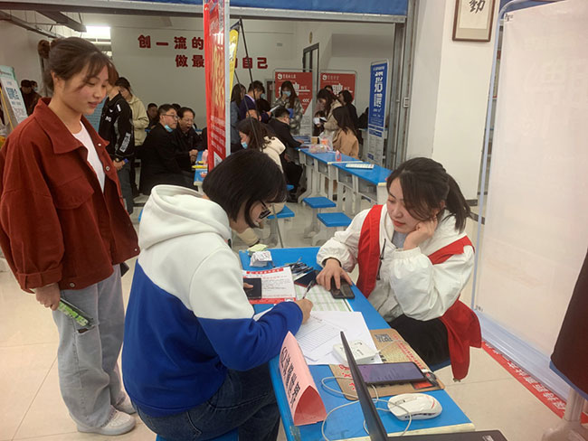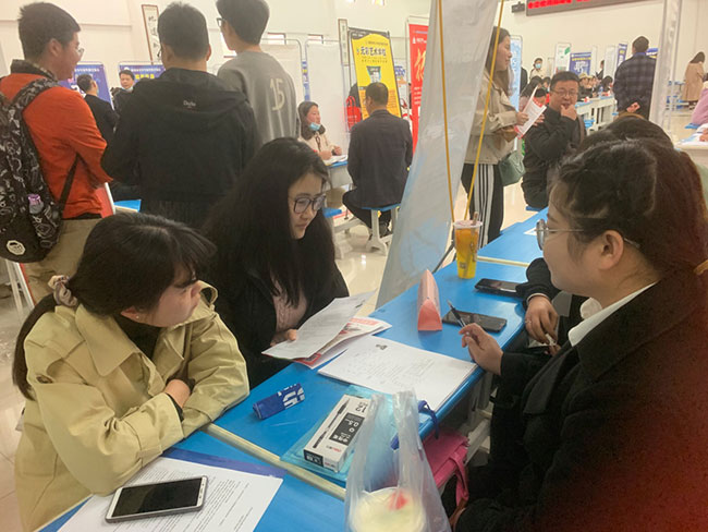 用人单位各显神通,主动对接,积极向应聘同学分发机构招聘宣传单,讲解企业在薪酬、福利待遇、培训晋升空间、工作生活条件等优势,期待招纳贤才。现场的热烈气氛还吸引了一些非毕业生前来,提前体验招聘流程了解岗位需求。